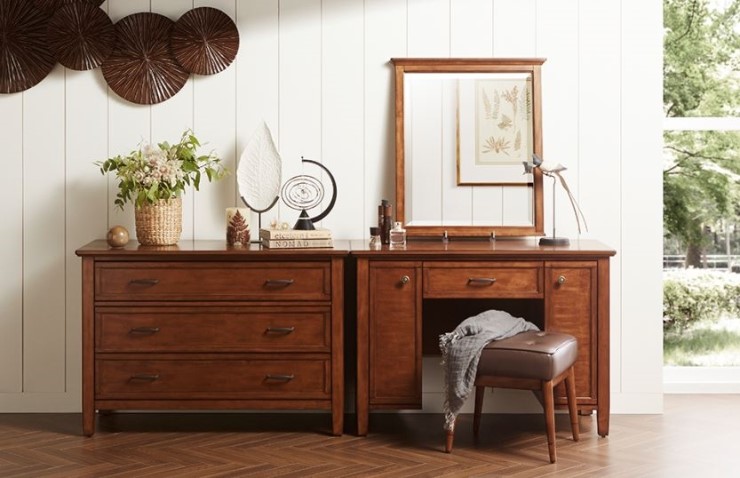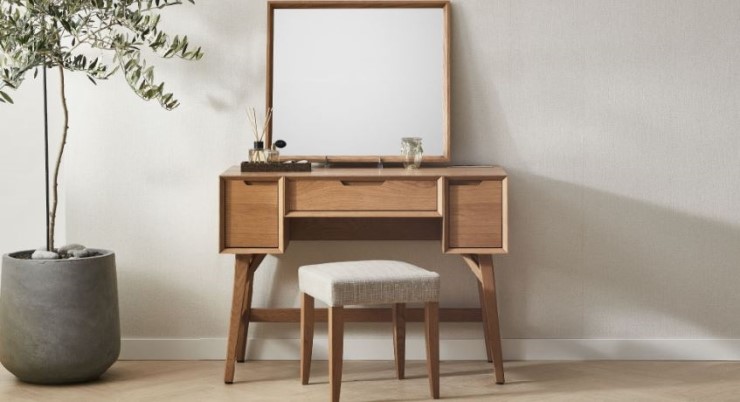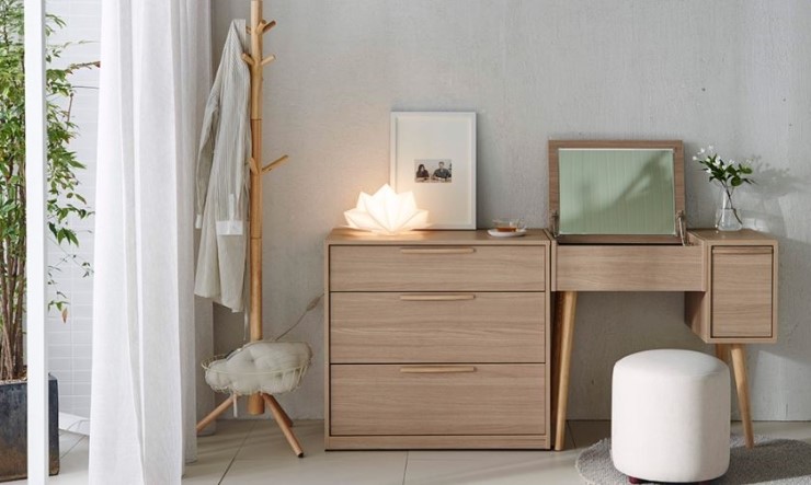 내추럴 우드 색상의 화장대로 사이즈가 한샘에서 가장 슬림한 제품이랍니다