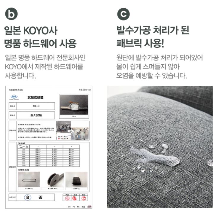 방수 가공 처리가 되어 물이 쉽게 스며들지 않아 오염을 예방할 수 있어요.