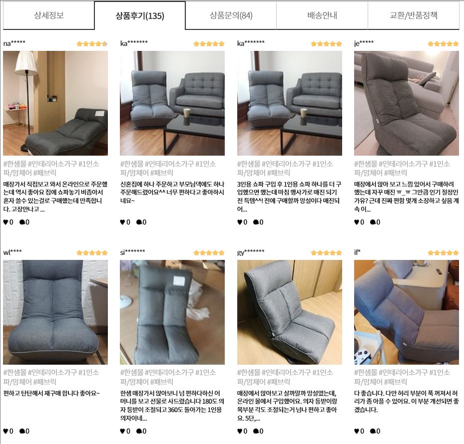 135개나 되는 후기. 많은 분들이 착석감과 디자인이 마음에 든다고 하네요.