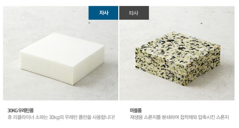 휴 일인 리클라이너에는 30kg 밀도의 버진 슬라브 우레탄 폼을 사용해서